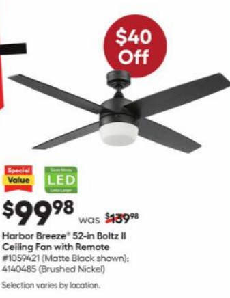 Harbor Breeze Boltz II 52-in Matte Black Color-changing Indoor Ceiling Fan with Light Remote (4-Blade)