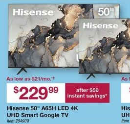 Hisense 50" A65H LED 4K UHD Smart Google TV with 4-Year Coverage