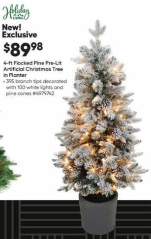 Holiday Living 4-ft Flocked Pine Pre-Lit Artificial Christmas Tree in Planter