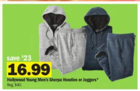 Hollywood Young Men's Sherpa Hoodies or Joggers