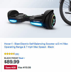 Hover-1 - Blast Electric Self-Balancing Scooter w/3 mi Max Operating Range & 7 mph Max Speed - Black