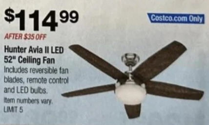 Hunter Avla LED 52" Celling Fan + reversible fan blades, remote control and LED bulbs.