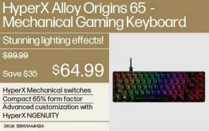 HyperX Alloy Origins 65 - Mechanical Gaming Keyboard - HX Aqua (US Layout)