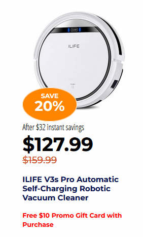 ILIFE V3s Pro Automatic Self-Charging Robotic Vacuum Cleaner Free $10 Promo Gift Card with Purchase