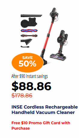 INSE Cordless Rechargeable Handheld Vacuum Cleaner Free $10 Promo Gift Card with Purchase