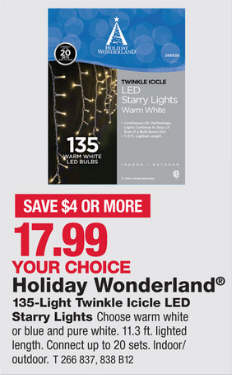 Icicle LED Starry Lights, Twinkling Blue & Pure White, 135-Ct.