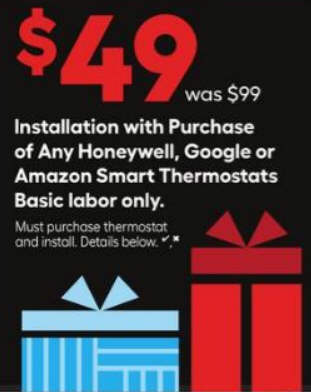 Installation with Purchase of Any Honeywell, Google or Amazon Smart Thermostats Basic labor only.