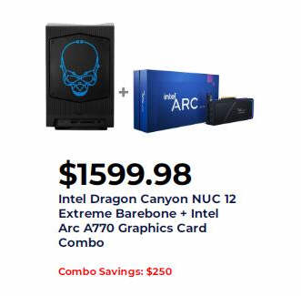 Intel Dragon Canyon NUC 12 Extreme Barebone + Intel Arc A770 Graphics Card Combo