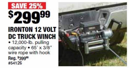 Ironton 12 Volt DC Powered Electric Truck Winch - 12,000-Lb. Capacity, Galvanized Wire Rope
