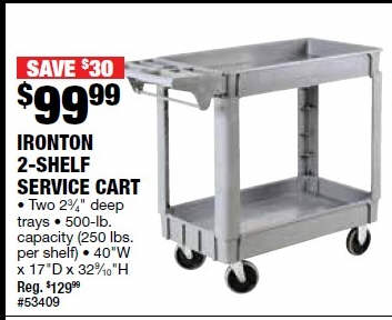 Ironton 500-Lb. Utility Cart - 40in.W x 17in.D x 32 9/10in.H