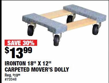 Ironton Carpeted Mover s Dolly - 1,000-Lb. Capacity, 18in.L x 12in.W