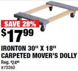 Ironton Carpeted Mover s Dolly 1000-Lb. Capacity, 30in.L x 18in.W