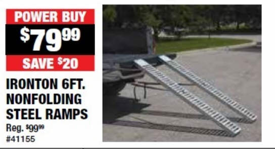Ironton Non-Folding Steel Loading Ramp Set - 1000-Lb. Total Capacity, 6ft.L x 9in.W