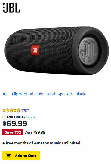 JBL - Flip 5 Portable Bluetooth Speaker - Black