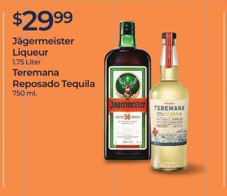 Jagermeister Liqueur or Teremana Reposado Tequila