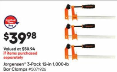 Jorgensen 3-Pack 12-in 1, 000-lb Bar Clamps