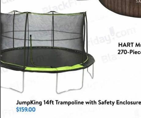 JumpKing 14ft Trampoline with Safety Enclosure, 200lb Weight Limit Black Lime Green