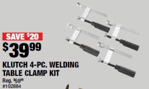 Klutch Welding Table Clamp Kit - 4-Pcs.