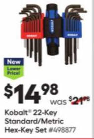 Kobalt 22-key Standard (Sae) and Metric Combination Hex Key Set