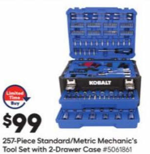 Kobalt 257-Piece Standard/Metric Mechanic's Tool Set with 2-Drawer Case