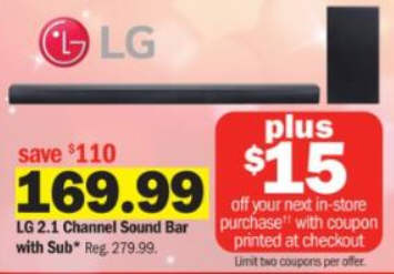LG 2.1 Channel Sound Bar with Sub + $15 In-store Coupon