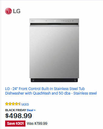 LG - 24" Front Control Built-In Stainless Steel Tub Dishwasher with QuadWash and 50 dba - Stainless steel
