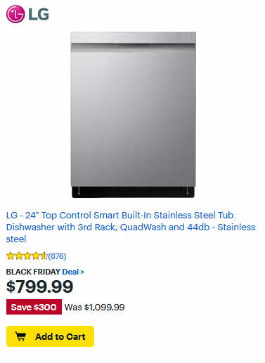 LG - 24" Top Control Smart Built-In Stainless Steel Tub Dishwasher with 3rd Rack, QuadWash and 44db - Stainless steel