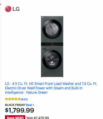LG - 4.5 Cu. Ft. HE Smart Front Load Washer and 7.4 Cu. Ft. Electric Dryer WashTower with Steam and Built-In Intelligence - Nature Green