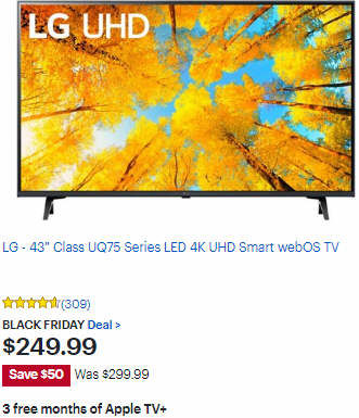 LG - 43 Class UQ75 Series LED 4K UHD Smart webOS TV
