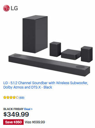 LG - 5.1.2 Channel Soundbar with Wireless Subwoofer, Dolby Atmos and DTS:X - Black
