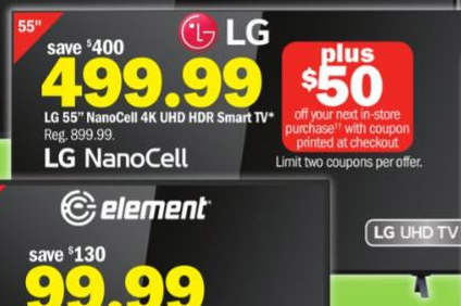 LG 55" NanoCell 4K UHD HDR Smart TV + $50 In-store Coupon