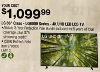 LG 86" Class - UQ8000 Series - 4K UHD LED LCD TV - Allstate 3-Year Protection Plan Bundle Included for 5 years of total coverage