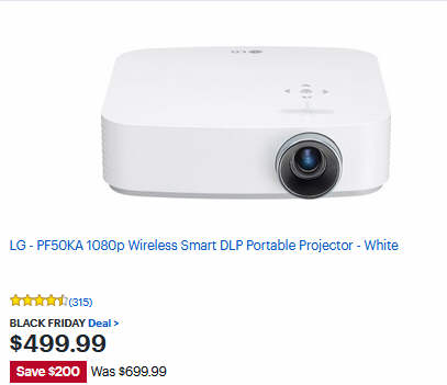 LG - PF50KA 1080p Wireless Smart DLP Portable Projector - White