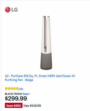 LG - PuriCare 818 Sq. Ft. Smart HEPA AeroTower Air Purifying Fan - Beige