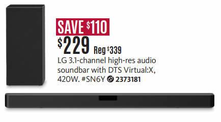 LG SN6Y 3.1 Channel 420 Watt High Res Audio Sound Bar with DTS Virtual:X