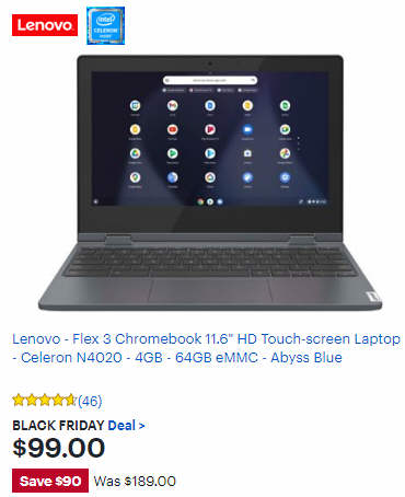Lenovo Flex 3 intel Celeron N4020 11.6" HD Touch-screen Laptop