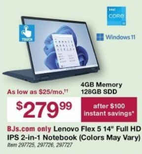 Lenovo Flex 5 Laptop, Intel Core i3-1115G4 Processor, 4GB Memory, 128GB SSD, Intel UHD Graphics