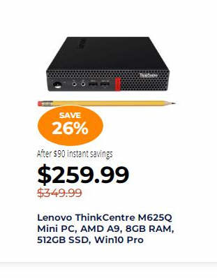 Lenovo ThinkCentre M625Q Mini PC, AMD A9, 8GB RAM, 512GB SSD, Win10 Pro