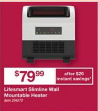 Lifesmart Slimline 1,500W Wall Mountable Infrared Heater