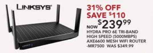 Linksys Hydra Pro 6E Tri-Band High Speed (5000Mbps)AXE6600 Mesh WiFi Router