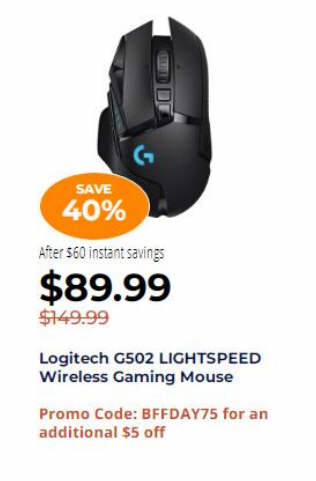 Logitech G502 LIGHTSPEED Wireless Gaming Mouse $89.99 via coupon BFFDAY75