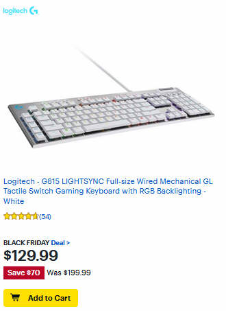 Logitech - G815 LIGHTSYNC Full-size Wired Mechanical GL Tactile Switch Gaming Keyboard with RGB Backlighting - White