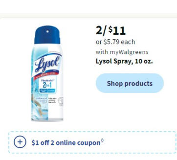 Lysol Spray, 10 oz.: 2/ $11 or $5.79 each