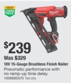 MILWAUKEE 18V 15-Gauge Brushless Finish Nailer