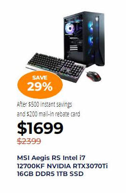 MSI Aegis RS Intel i7 12700KF NVIDIA RTX3070Ti 16GB DDR5 1TB SSD