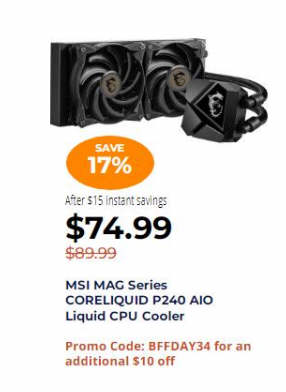 MSI MAG Series CORELIQUID P240 AIO Liquid CPU Cooler $74.99 via coupon BFFDAY34