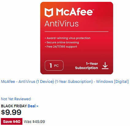 McAfee AntiVirus (1 Device) (1-Year Subscription) Windows