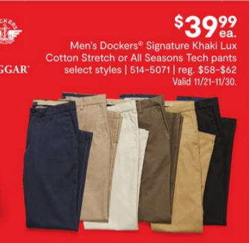 Men's Dockers Signature Khaki Lux Cotton Stretch or All Seasons Tech pants