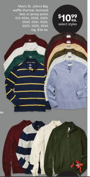 Men's St. John's Bay Waffle Thermal, Textured Tees or Jersey Polos