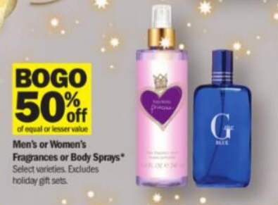 Men's or Women's Fragrances or Body Sprays: BOGO of equal or lesser value 50% off
